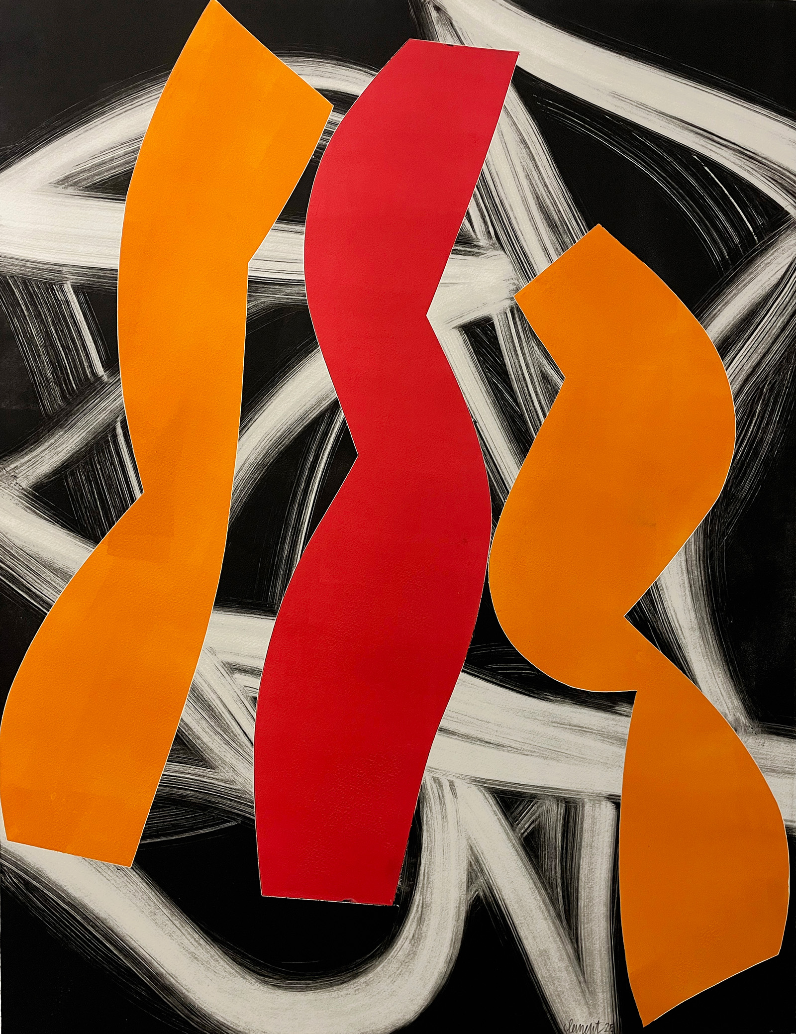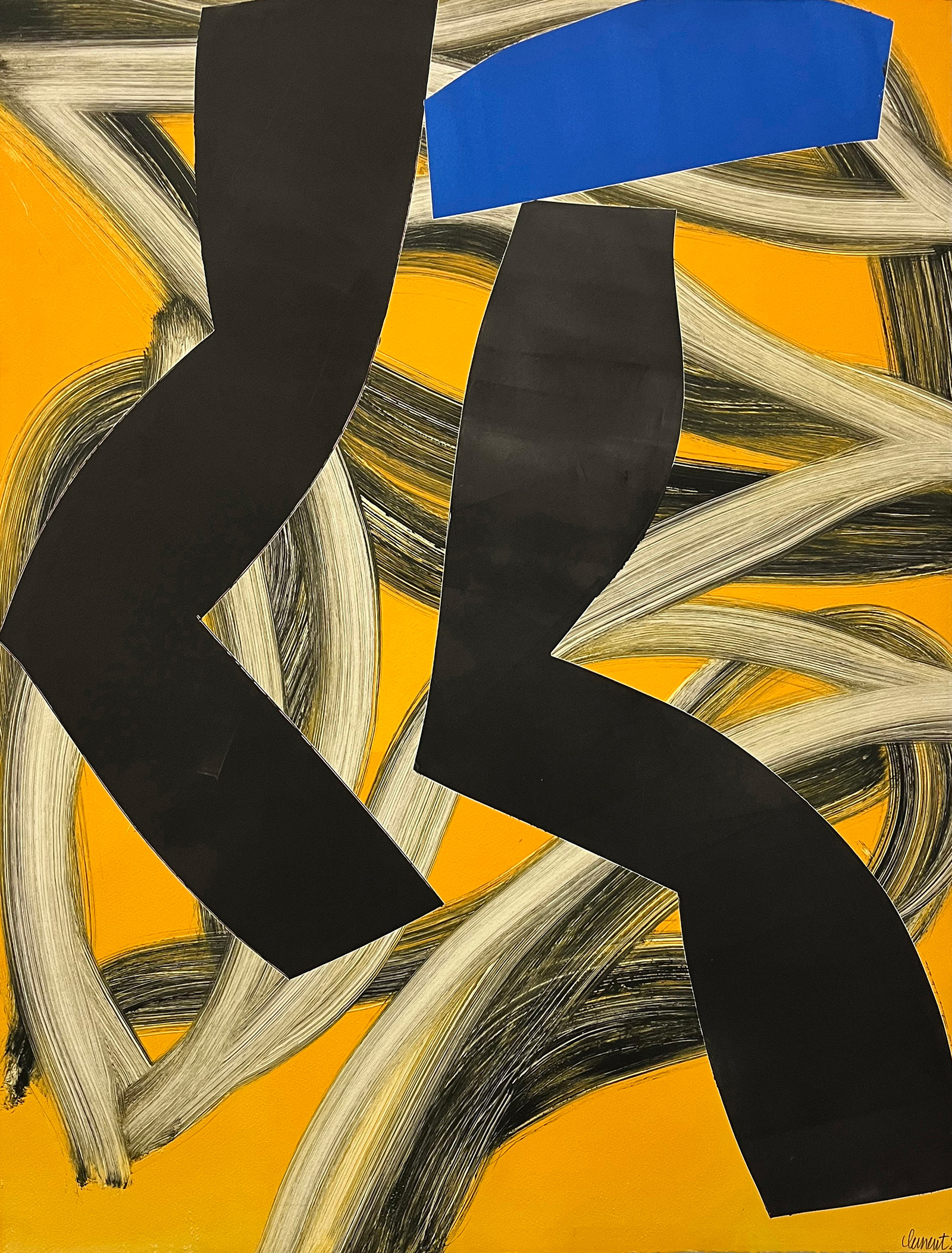 L'artiste développe depuis près de quarante ans une oeuvre abstraite située entre l'expression et une recherche de la composition.